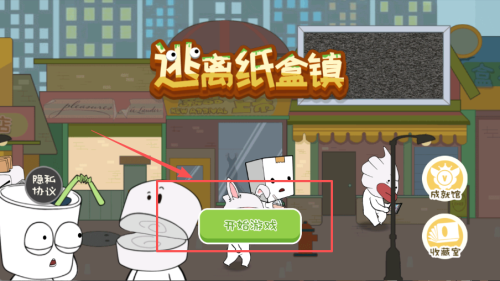 1、进入“逃离纸盒镇”初始界面,定位界面中间的绿色“开始游戏”按钮,轻点后启动游戏流程。