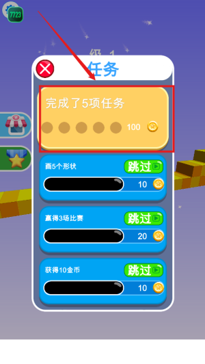 3、累计达成画5个形状赢3场比赛等5项成就,解锁神秘奖励获得额外金币。
