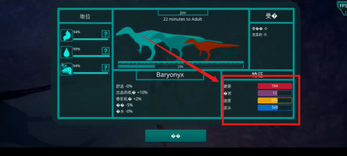4、重爪龙幼年状态还需二十二分钟成长为成年,健康值一百八十四实时监测出血骨折等负面效果。