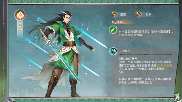 泉巳的定位是木属性的游侠,来自于仙派云中。
