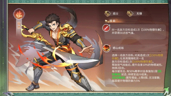 释放怒气技能后,提升自身10%的物理减伤,持续2回合。
