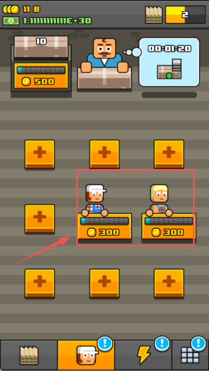 2、当员工周围出现加号图标时,确认金币充足后立即点击拓展工位,提升该员工的生产效率,为后续收益增长打下坚实基础。
