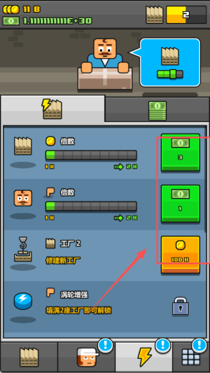 4、留意任务系统中的目标进度,完成指定条件后领取奖励,用于解锁新工厂或兑换特殊道具如克隆机和幸运叶子,加速企业发展。