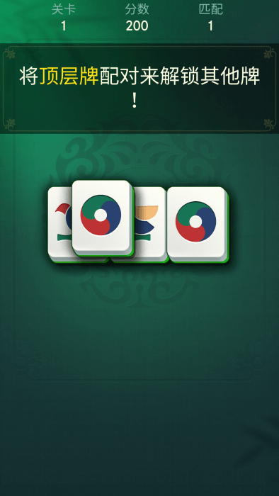3、点击或滑动两个相符的图块,它们就会从棋盘上消失。优先解锁顶层的牌进行匹配。