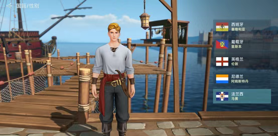 2、游戏目前延续了大航海时代传说的基本玩法,初期选择的国家有很多。