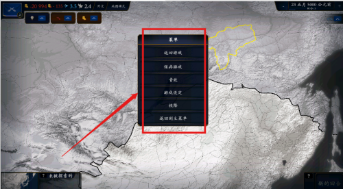 4、游戏菜单提供保存投降返回主菜单选项,音效设定与新的回合按钮随时待命。