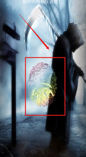 3、指纹验证区域提示按压拇指,扫描生物特征数据作为算法依据,增加预测结果神秘性与趣味性。
