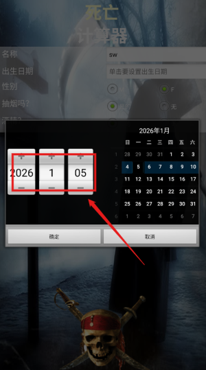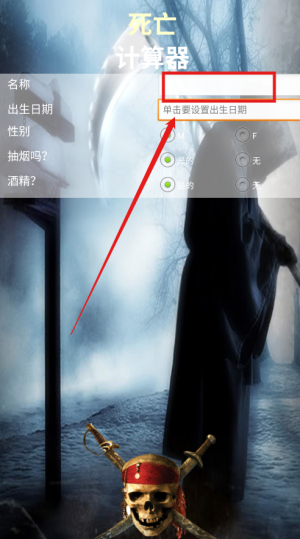 1、启动死亡计算器后填写基础资料,姓名出生日期性别以及抽烟饮酒习惯逐一录入,确保信息准确完整。