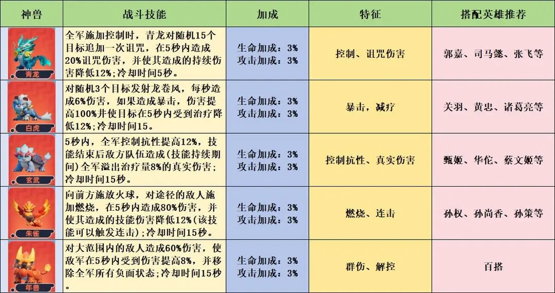 三、神兽介绍和搭配推荐