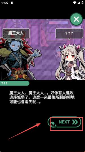 1、进入剧情界面后,查看角色对话内容,点击 “NEXT” 按钮推进到下一段剧情环节。