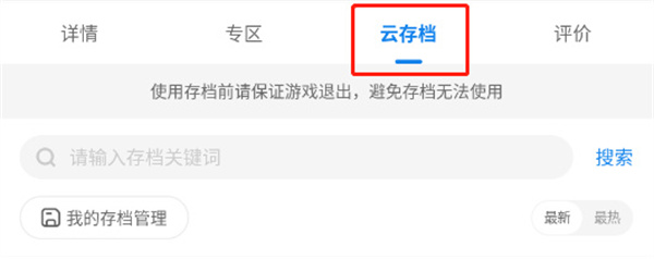 3、支持云存档的游戏详情页可以进入云存档。