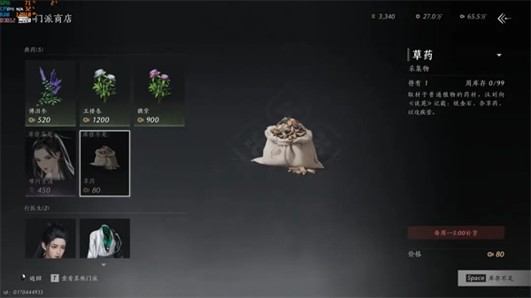 青溪可以换草药,其他门派看着自己有没有上面提过的按需购买,貌似还比商店买便宜。