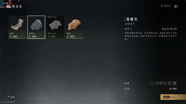 必买:脂尾羊皮,独山玉,和四种鱼各十条。