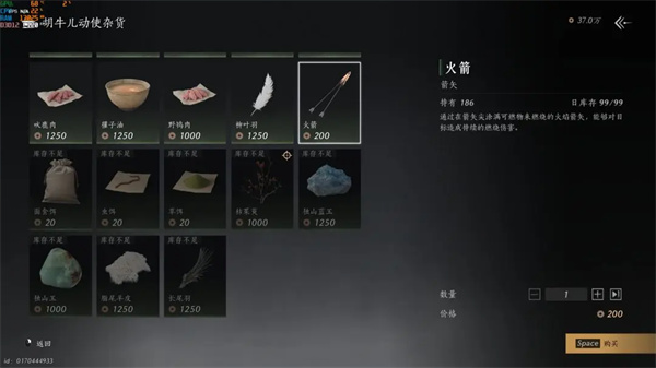 必买:三种鱼各十条,可以开启博物录,喜欢钓鱼可以不买金鲤。雕翎,毒晶和大黑毛皮可以用来叠音,采集不好找也要买。