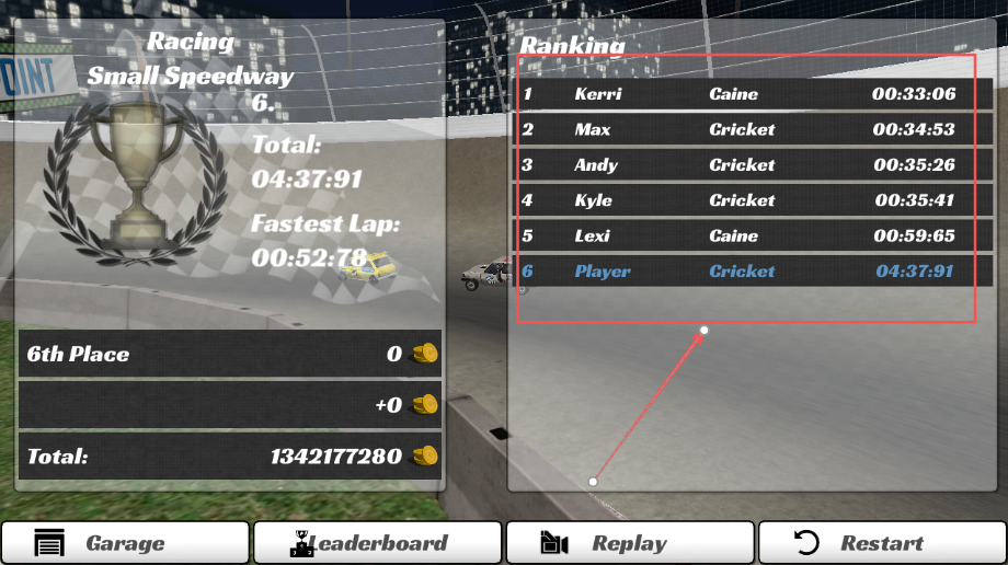 3、持续发动猛烈攻击消耗对手车辆耐久度,通过精准的角度计算和力度控制将其全部撞出竞技场边界范围锁定最终胜利。