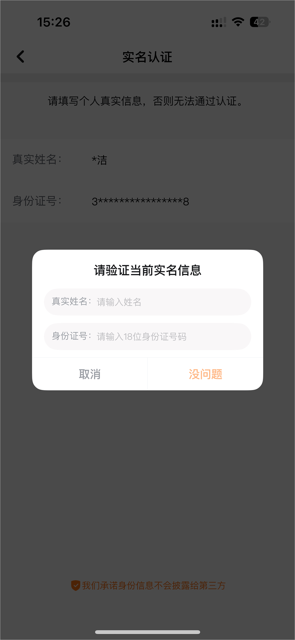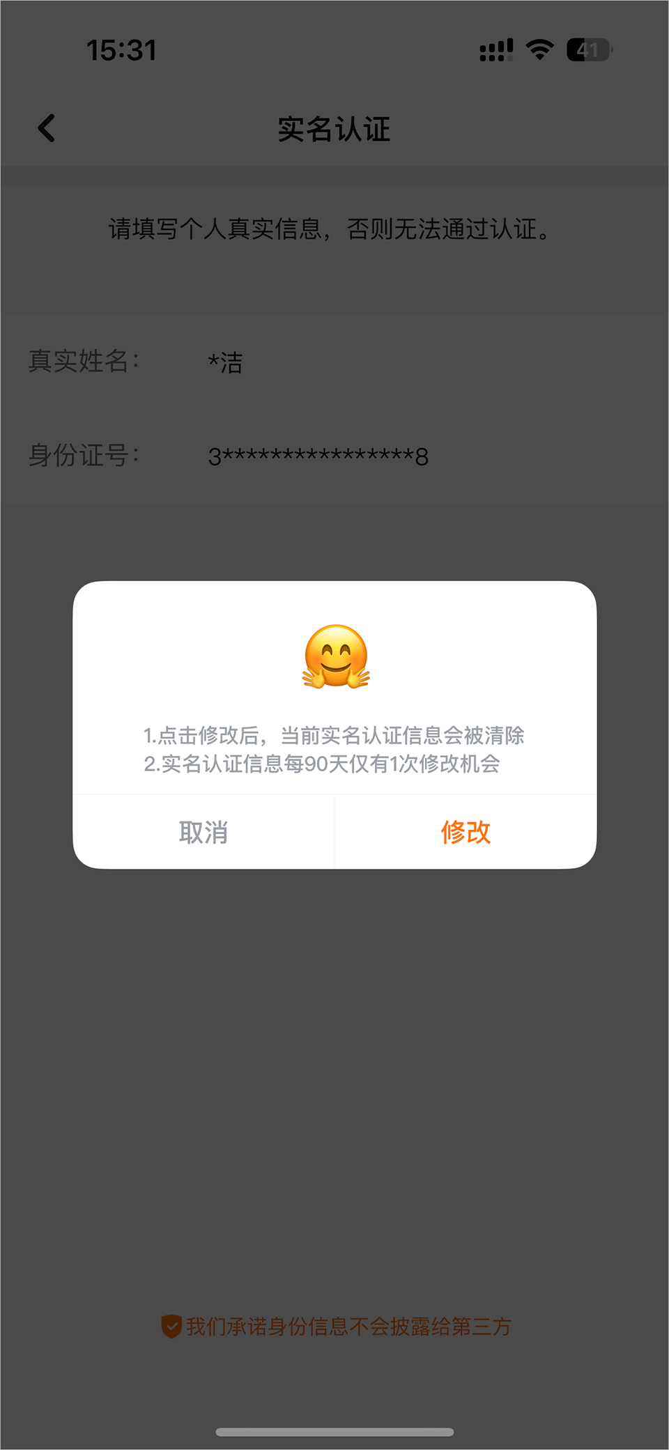 点击修改后,当前实名认证信息会被清除,实名认证信息每天仅有十次清除机会。