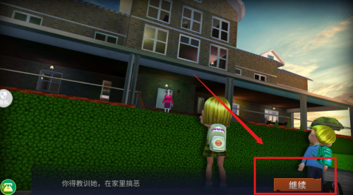 2、系统提示需要教训她,在家里搞恶作剧,点击继续了解具体作弄目标和计划。