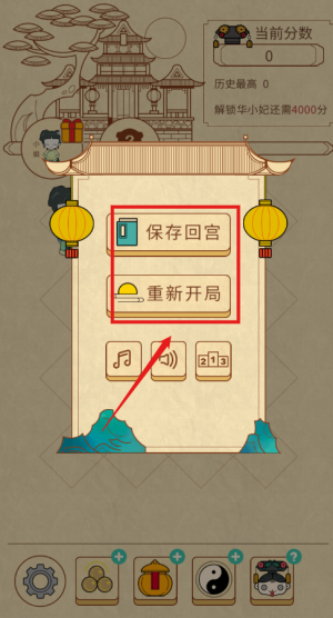 4、当前分数历史最高分实时显示,距离解锁华小妃还需四千分明确,保存回宫继续征程。