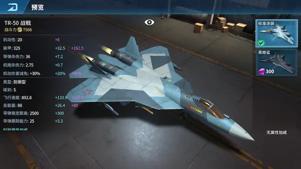 7、TR-50战戟是一款高性能多用途战机,拥有匿迹性能,能作超音速巡航飞行。