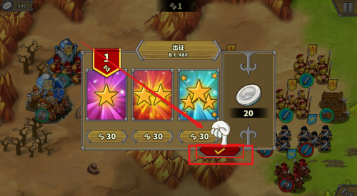 3、出征界面选择斯巴达勇士等兵种,时间线回溯至公元前四八零年,数值配置影响战局走向,策略深度足够研究琢磨。
