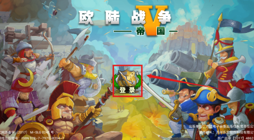1、启动欧陆战争帝国进入登录界面,验证出版信息与网游备字后点击登录按钮,流程规范安全可靠,身份确认无误后方可继续。