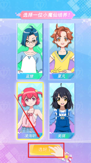 1、选择心仪角色开启养成之旅,蓝慧夏凡凌海昕美琪四位魔仙各有特色,点击选好按钮确定伙伴。