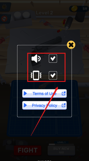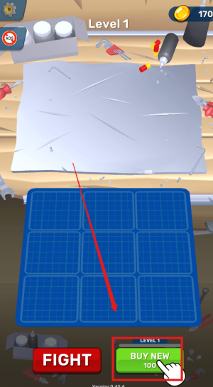1、启动LEVEL战斗挑战后主界面一目了然,当前等级与积分显示清晰,点击FIGHT按钮即刻开战,BUY NEW商城提供装备升级。