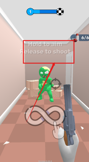 2、战斗操作方式简单直观,按住屏幕就能精准瞄准,松开手指瞬间完成射击,弹药数量6/6实时显示。