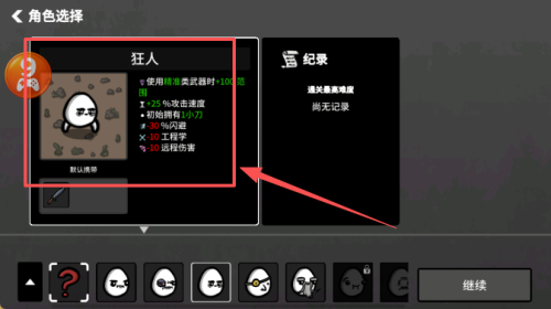 3、在列表中选中 “狂人”,可看到其附带 “使用霰弹类武器 + 10% 伤害” 等增益效果。