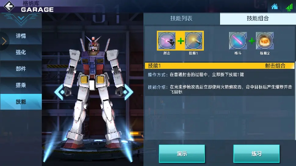 七、特殊技能:不同的机体会有不同的特殊技能和技能连招,可以在机体详细中查看