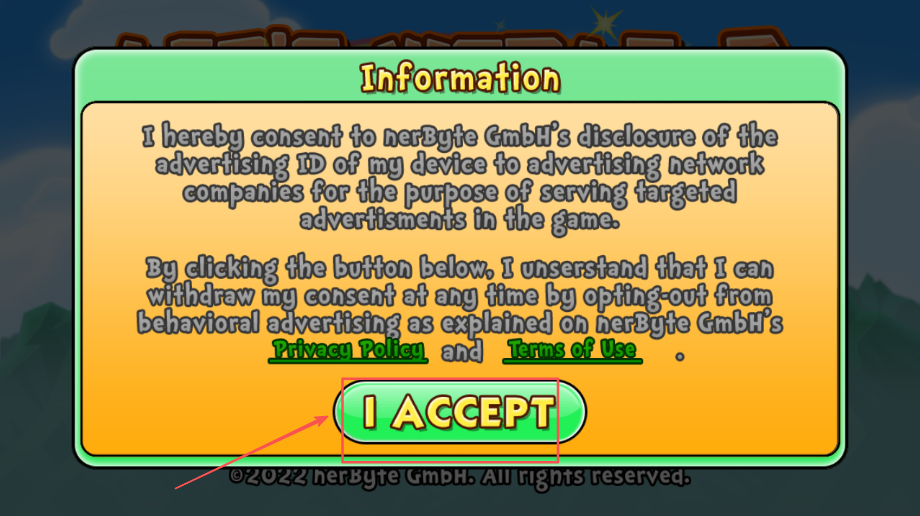 3、仔细阅读后点击接受按钮同意相关服务条款内容,完成游戏初始设置和个性化配置工作,为后续游戏做好准备。
